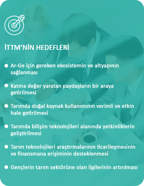 İTTM’nin amacı, tarımı sürdürülebilir, rekabetçi ve verimli hale getirmek için bilgi ve iletişim sektörünün tarıma daha güçlü katılımını, entegrasyonunu ve tarımın dijital dönüşümünü desteklemeyi amaçlayan tarım teknolojileri girişimciliği ekosistemini hayata geçirmektir.